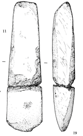 Les Haches quadrangulaires sont rares et plutôt de forme trapézoïdale comme celles de la culture Horgen près du lac de constance, justement dans la période 3300 -3100 avant JC.
