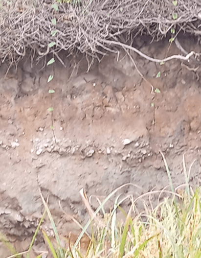 Un détail me saute aux yeux, il y a une séparation nette entre les 2 limons comme un trait bien linéaire dessiné par le peintre de ce tableau. Il s’agit de petits cailloux, mélange d’éclats de schiste, de quartz et de silex.