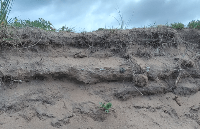 - En Loire Atlantique à Saint Michel en Brévin, en plusieurs endroits nous avons une couche d’argile jaune (soufré) ou verdâtre bien détachée et datée elle aussi par les vestiges néolithiques abondants. (voir mon livre).