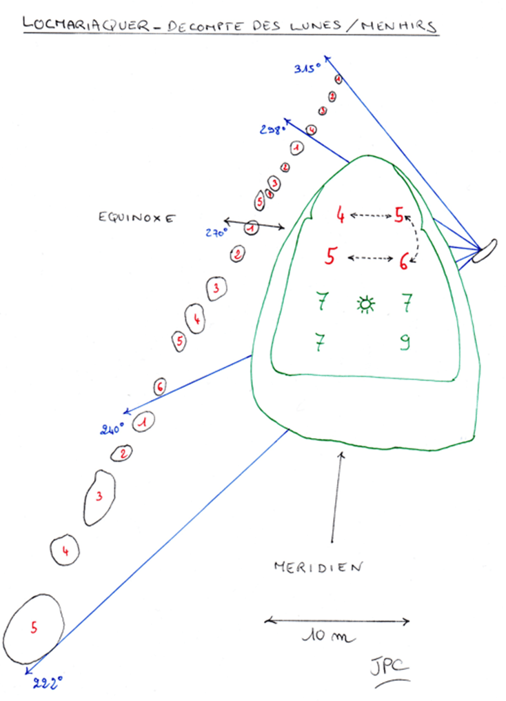 Cette dalle est un calendrier qui nous livre ses secrets (dont l’utilisation des menhirs pour pointer les étoiles que la Lune rencontre dans sa danse nocturne).