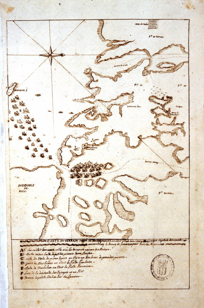 Seigneur de Locmariaquer et inspiré par la lecture de la Guerre des Gaules de Jules César, il attire l’attention des Lumières sur les mégalithes, en « prouvant » que la capitale des Vénètes Dariorig est située dans son fief. Il nous dresse la carte de la bataille contée dans la guerre des Gaules et dessine en marge un bout des alignements qui auraient servi de camp retranché.