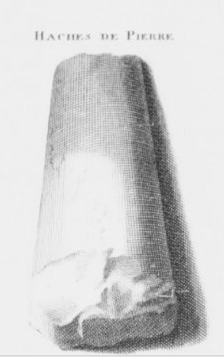 Si les locaux savent bien reconnaître les mégalithes, l’origine qui leur est attribuée reste très vague. Pour déplacer ces grosses pierres, il faut l’aide des esprits, des démons ou des fées, ou au moins celle de géants dotés d’une force surhumaine. L’histoire du Gargantua rabelaisien qui pique-nique sur une table de pierre en est l’expression littéraire. Mais peu à peu, à l’orée du XVIIIème siècle, les érudits vont commencer à collecter des haches, des silex et ossements trouvés sous ces dolmens témoignant d’une époque antérieure au métal et donc au monde connu des romains et gaulois.