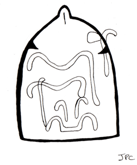 Nous proposons aussi l’hypothèse que les survivants ont « réparé » l’entrée du tumulus par la dépose en réemploi d’une stèle gravée du motif « en écusson » (musée de Carnac) et dont l’aspect anthropomorphe est selon nous pré-Castellic.