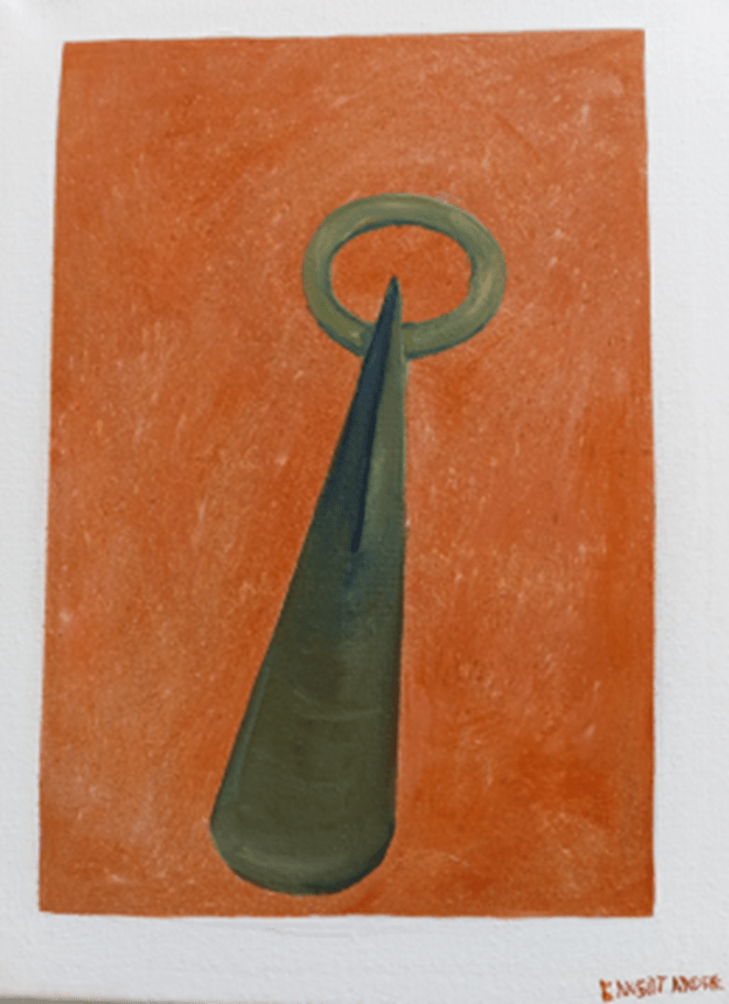Une étude poussée de sa conception fait apparaitre une rectification du symbole crosse en hache emmanchée (E. Mens. 2006).