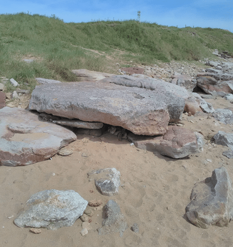 Ci-dessous les restes du dernier dolmen de l’île en phase terminale :
