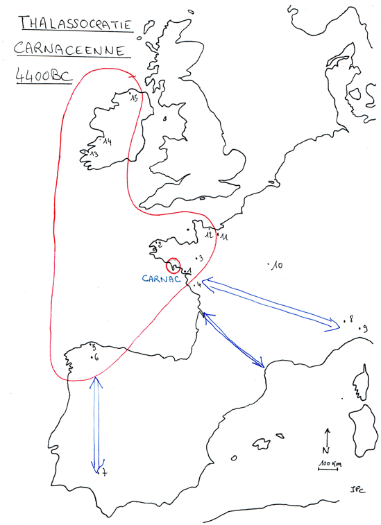 La sphère d’influence du Royaume de Carnac s’étendait au-delà des mers et nous pouvons tenter ici de dessiner les comptoirs et les réseaux d’échange. Il apparait que ce royaume profitait de l’avantage procuré par la maîtrise de la navigation et son économie était tournée vers la mer.