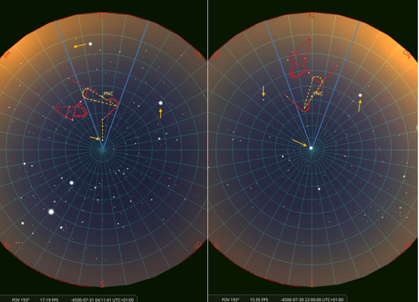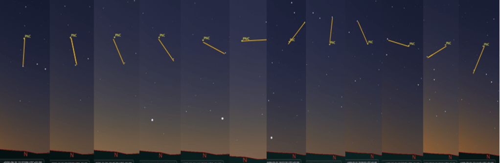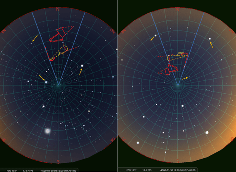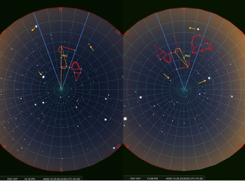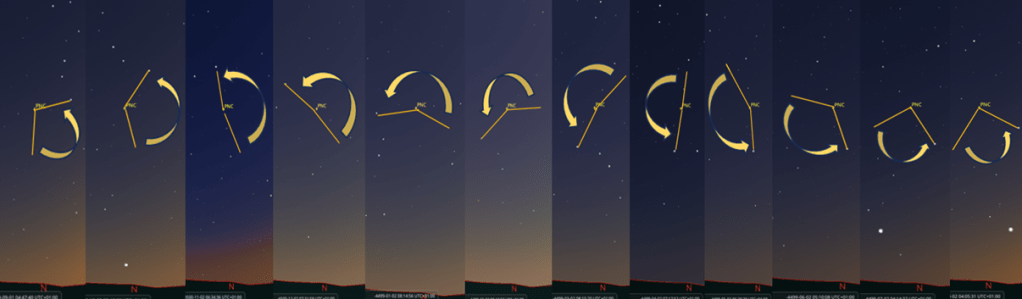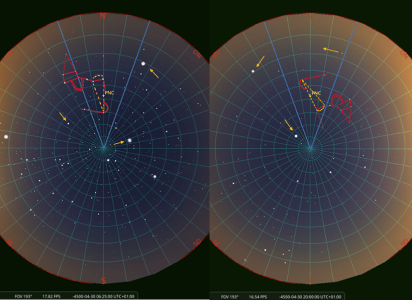 Ces constellations tournent sur l’axe PNC (pôle nord céleste) en 24 heures.