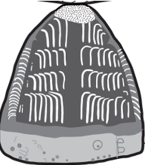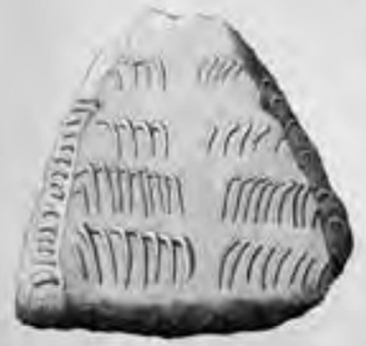 Il y a 7 « crosses » un espace (ou peut-être un soleil gravé symbolisant l’équinoxe), puis à nouveau 7 « crosses » qui complètent l’année.