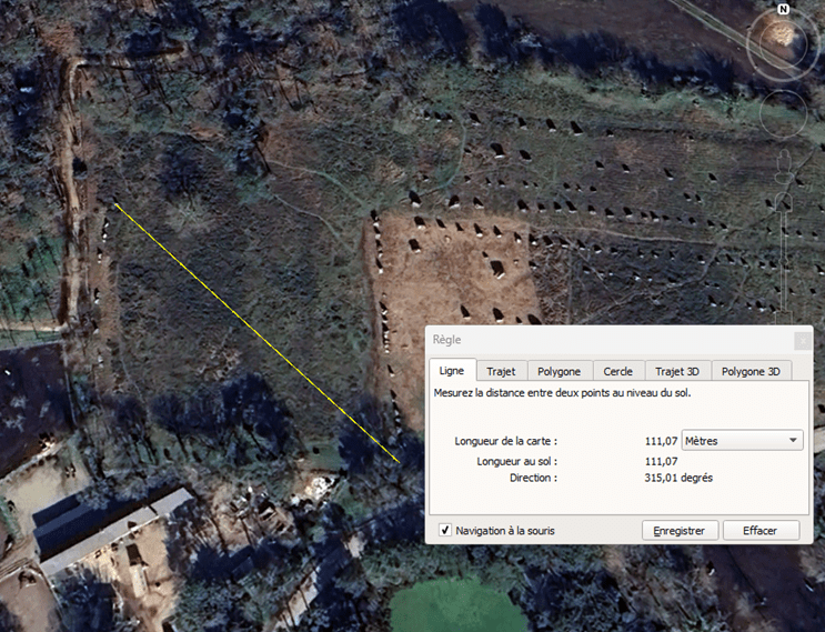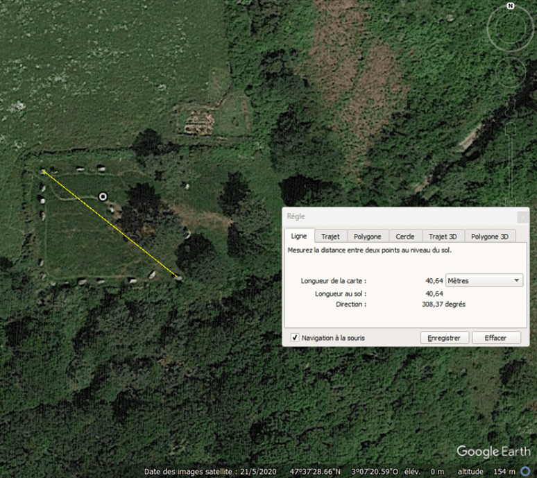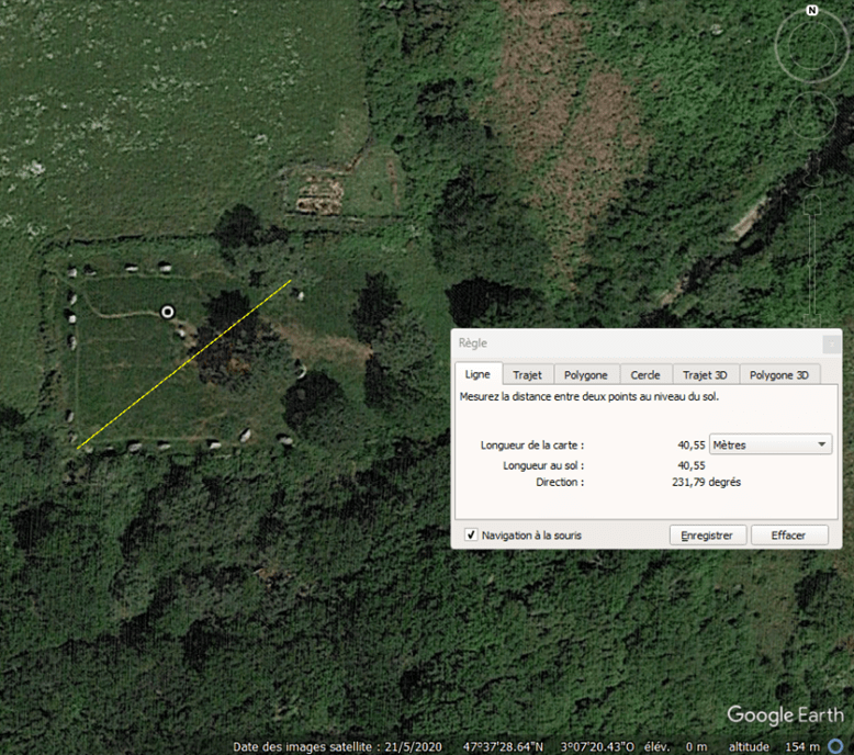 Disposition des axes sur le cromlech de Kerlescan avec Google Earth (jpc)