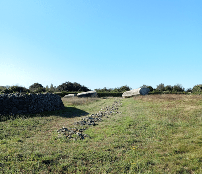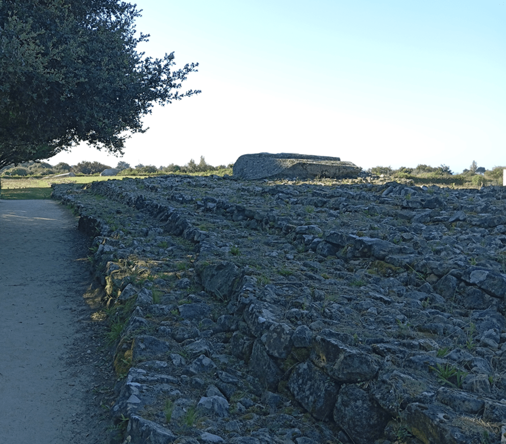 L’axe ouest partait du grand menhir pour atteindre le cœur du tumulus Er Grah sous lequel se retrouvent des traces de poteaux alignées dans cette même orientation.