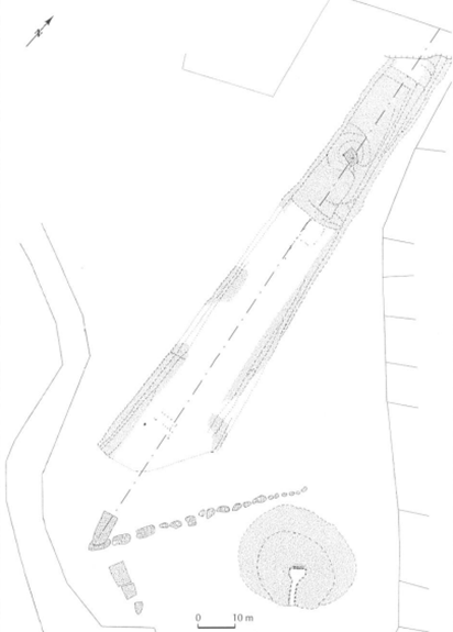 Le tumulus vu à partir du sud (jpc). 140 mètres de long pour 2 à 3 m de hauteur.