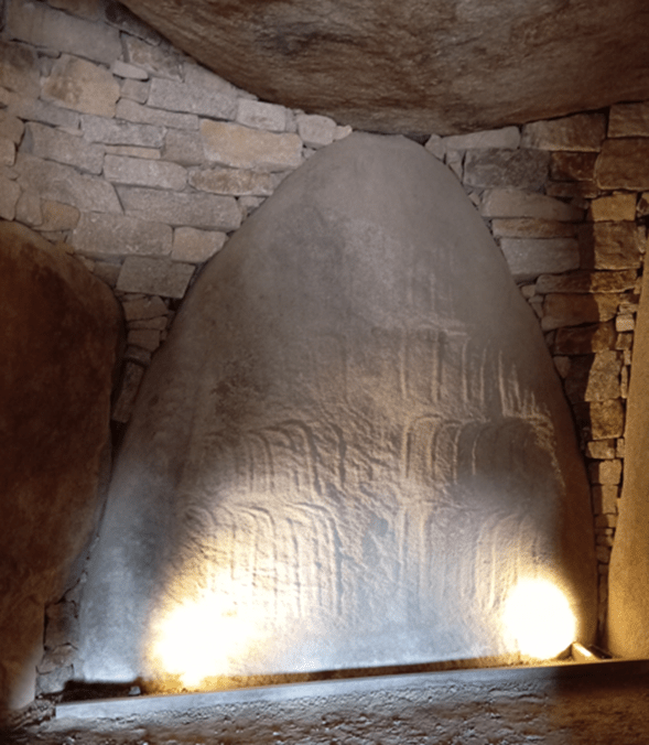 Le recto est actuellement bien mis en valeur, et chacun peut le contempler dans le Cairn, (et aussi au Musée de Carnac).