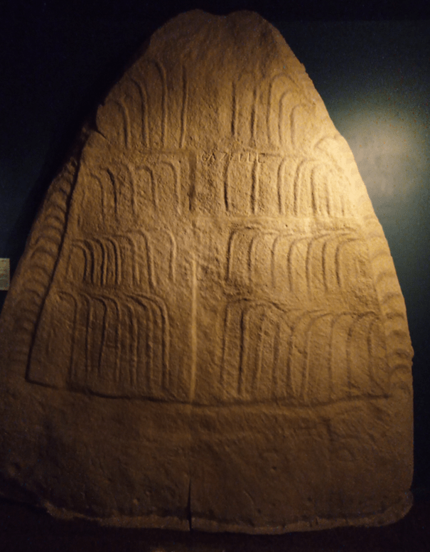 C’est un objet bien étrange, qui n’a pas d’équivalent. On est tout de suite attiré par ces signes gravés sur les 2 faces. Et on cherche à comprendre. Il y a-t-il un lien avec l’alignement tout proche du Grand Menhir ?