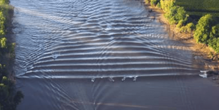 Les mascarets se développent à partir de berges naturelles en pente douce. L’endiguement permet de les amoindrir. (N. Bonneton et al. 2012).