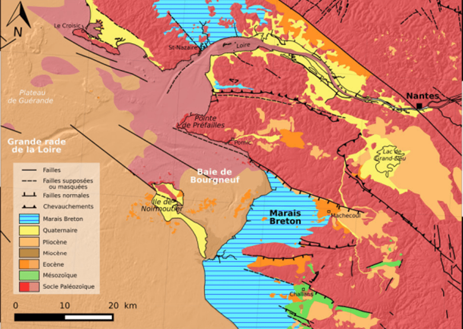 Pour ma part, je me fie aussi aux travaux plus récents de caroline Kaub en 2019, qui mettent en avant la faille de Machecoul et celle de Noirmoutier, parallèles à celle du cisaillement sud armoricain. Elles aboutissent justement à la fosse du Croisic…